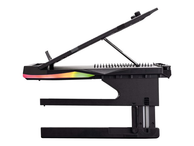 Avec 20 angles de vision réglables, 3 niveaux de hauteur, 2 supports de téléphone, des pieds pliables et un éclairage RGB, le support pour ordinateur portable de jeu Portus X2 positionne tout là où vous en avez besoin pour un jeu optimal.