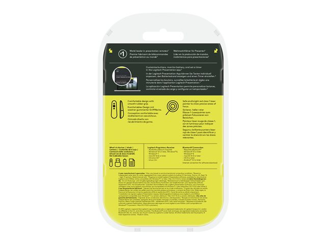 Effectuez des présentations percutantes grâce à la télécommande de présentation R500s. Déplacez-vous librement et parcourez les diapositives jusqu'à 20 mètres de distance tout en mettant en évidence les points clés grâce au pointeur laser rouge. La télécommande R500s a été optimisée pour être utilisée sous Windows , macOS et avec les principaux logiciels de présentation.