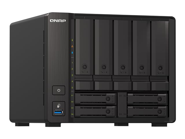 Doté d'un processeur quadricœur AMD Ryzen V1000 series V1500B et d'une connectivité 10GbE/2,5GbE, le TS-h973AX à 9 baies embarque une infrastructure de stockage hybride de grande capacité dans un encombrement physique compact. Avec cinq baies de disques SATA 6Gbps de 3,5 pouces, deux emplacements pour SSD NVMe U.2 de 2,5 pouces et deux emplacements pour SSD SATA 6Gbps de 2,5 pouces, le TS-h973AX peut bénéficier de la mise en cache SSD pour stimuler les applications à forte intensité d'IOPS. Avec le système d'exploitation QuTS hero basé sur ZFS, le TS-h973AX garantit l'intégrité des données et prend en charge la déduplication et la compression des données en ligne au niveau bloc, les snapshots quasi illimités et SnapSync en temps réel pour satisfaire les serveurs de fichiers critiques, les serveurs de virtualisation, l'édition vidéo collaborative et la sauvegarde et la récupération efficaces des données avec des performances de classe professionnelle, une fiabilité professionnelle et un coût global réduit.