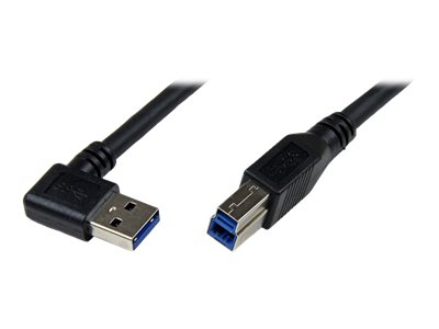 Le câble noir USB 3.0 A vers B 1 m USB3SAB1MRA comprend un connecteur mâle USB A à angle droit, vous permettant de connecter vos périphériques USB 3.0 B à votre ordinateur de bureau, ordinateur portable ou serveur, même dans les espaces réduits et difficiles d'accès.
