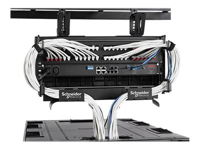 Ce cadre de raccordement de câblage en hauteur est un cadre 4U à 2 montants de 482 mm (19 po) de largeur qui se fixe directement aux systèmes de gestion des câbles suspendus au-dessus des racks ou aux armoires pour le raccordement ou l'installation de petits commutateurs. Le câblage en hauteur offre davantage de flexibilité dans la conception des réseaux et des centres de données en dissociant le câblage réseau physique de l'armoire, ce qui permet de faciliter le déplacement des racks et les mises à niveau du réseau tout en garantissant des gains de temps et d'argent. Le cadre est fourni de série avec des supports pour chemin de câbles grillagé et peut également être monté sur les systèmes d'échelles de câbles à l'aide du support d'élévation d'échelles de câbles (AR8186). Le cadre peut supporter jusqu'à 15 kg (33 lb) d'équipements montés en rack ou de câbles.