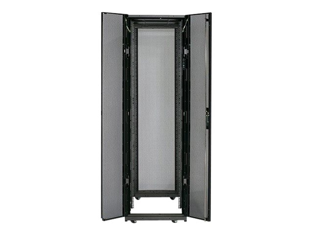 Armoires informatiques riches en fonctionnalités optimisées pour l'architecture en rangées InfraStruxure, la gestion des câbles, la distribution d'alimentation ainsi qu'une circulation d'air optimale.