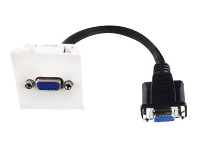 Plastron audio-vidéo permettant d'installer sur des goulottes de bureaux ou dans des pots, une connexion pour un écran LCD, un vidéoprojecteur voir une caméra de vidéosurveillance.