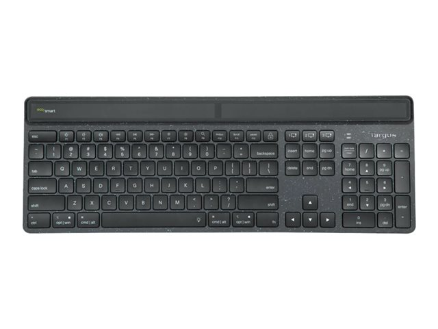 Targus EcoSmart - Clavier - collecte durable d'énergie - antimicrobienne - rétroéclairé - sans fil - Bluetooth 5.0 - QWERTY - R.-U. - commutateur : commutateurs à clé à ciseaux - noir - emballage durable