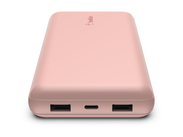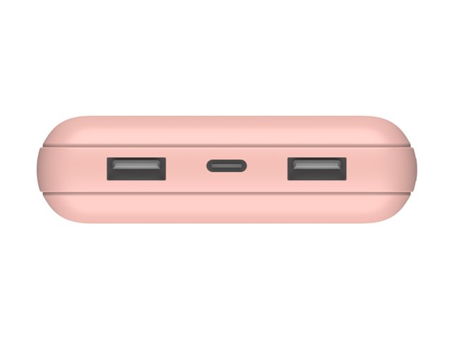Belkin BOOST CHARGE - Banque d'alimentation - 20000 mAh - 15 Watt - 3 connecteurs de sortie (2 x USB, 24 pin USB-C) - sur le câble : USB, USB-C - rose gold