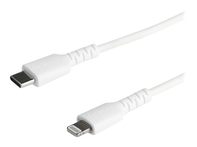 StarTech.com Câble USB-C vers Lightning Blanc Robuste 1 m - Câble de Charge/Synchronistation USB Type C vers Lightning Fibre Aramide - iPad/iPhone 12 Certifié Apple Mfi (RUSBCLTMM1MW) - Câble Lightning - Lightning mâle pour 24 pin USB-C mâle - 1 m - blanc RUSBCLTMM1MW