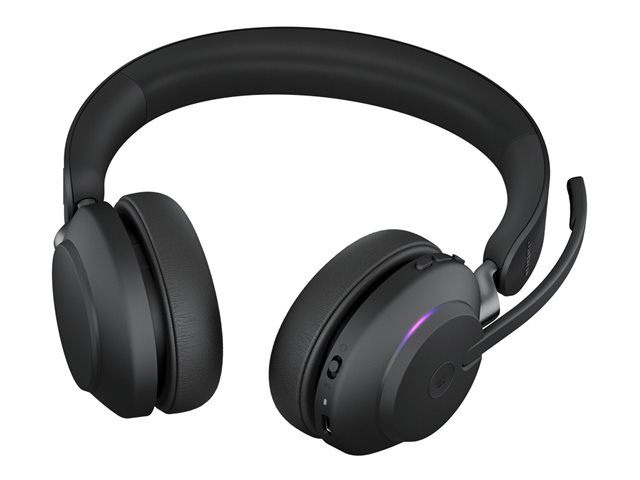 Jabra Evolve2 65 MS Stereo - Micro-casque - sur-oreille - Bluetooth - sans fil - USB-C - isolation acoustique - noir - avec support de chargement - Certifié pour Microsoft Teams