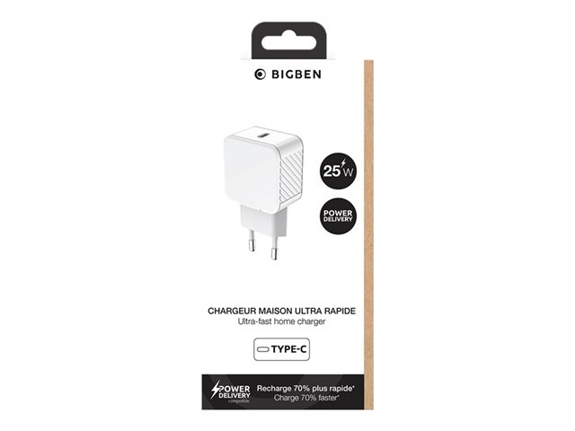 BigBen Connected - Adaptateur secteur - 100 % de plastique recyclé - 25 Watt - PD (24 pin USB-C) - blanc CS25WCPDRW