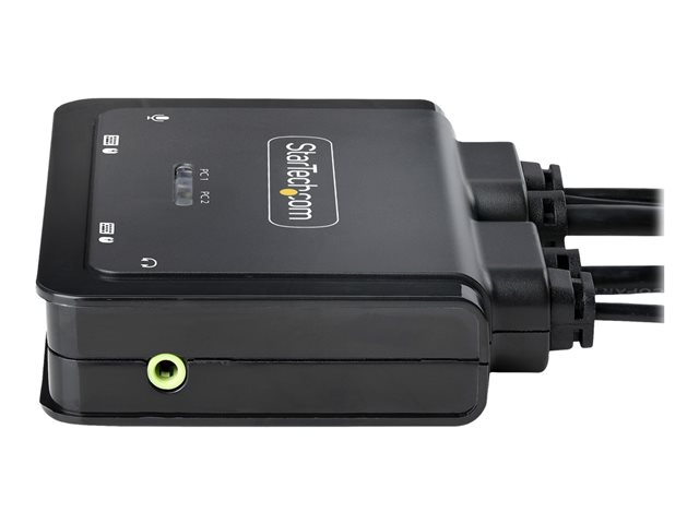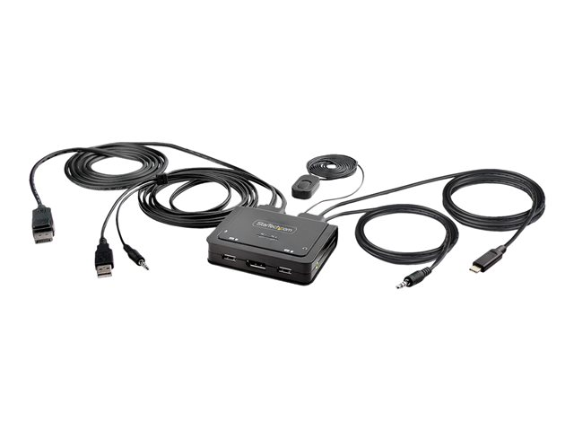 StarTech.com 2-Port Hybrid USB-C DisplayPort Cable KVM Switch, 4K 60Hz, Compact KVM with 6ft/1.8m USB-A/DisplayPort/Audio & 4ft/1.2m USB-C Integrated Host Cables, Bus Powered - Remote Push Button/Hotkey Switching (C2-D46-UAC-CBL-KVM) - Commutateur écran-clavier-souris/audio/USB - compact - 2 x KVM / audio / USB - 1 utilisateur local - de bureau