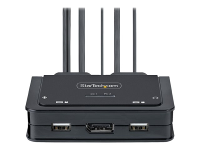 StarTech.com 2-Port Hybrid USB-C DisplayPort Cable KVM Switch, 4K 60Hz, Compact KVM with 6ft/1.8m USB-A/DisplayPort/Audio & 4ft/1.2m USB-C Integrated Host Cables, Bus Powered - Remote Push Button/Hotkey Switching (C2-D46-UAC-CBL-KVM) - Commutateur écran-clavier-souris/audio/USB - compact - 2 x KVM / audio / USB - 1 utilisateur local - de bureau C2-D46-UAC-CBL-KVM