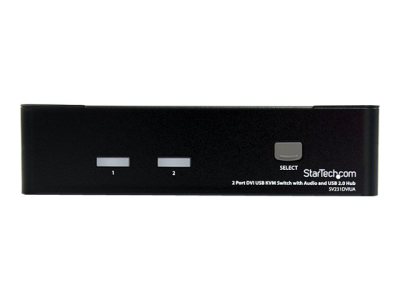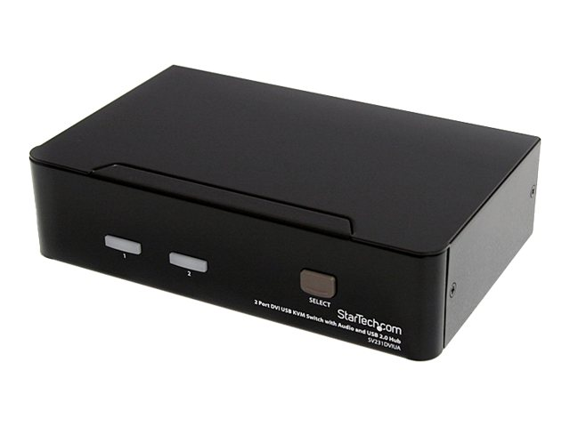 Le commutateur KVM DVI USB 2 ports SV231DVIUA vous permet de contrôler deux ordinateurs compatibles USB et DVI à partir d'un ensemble unique avec écran et périphériques (clavier, souris et haut-parleurs), et deux périphériques USB supplémentaires branchés aux ports USB intégrés au hub.